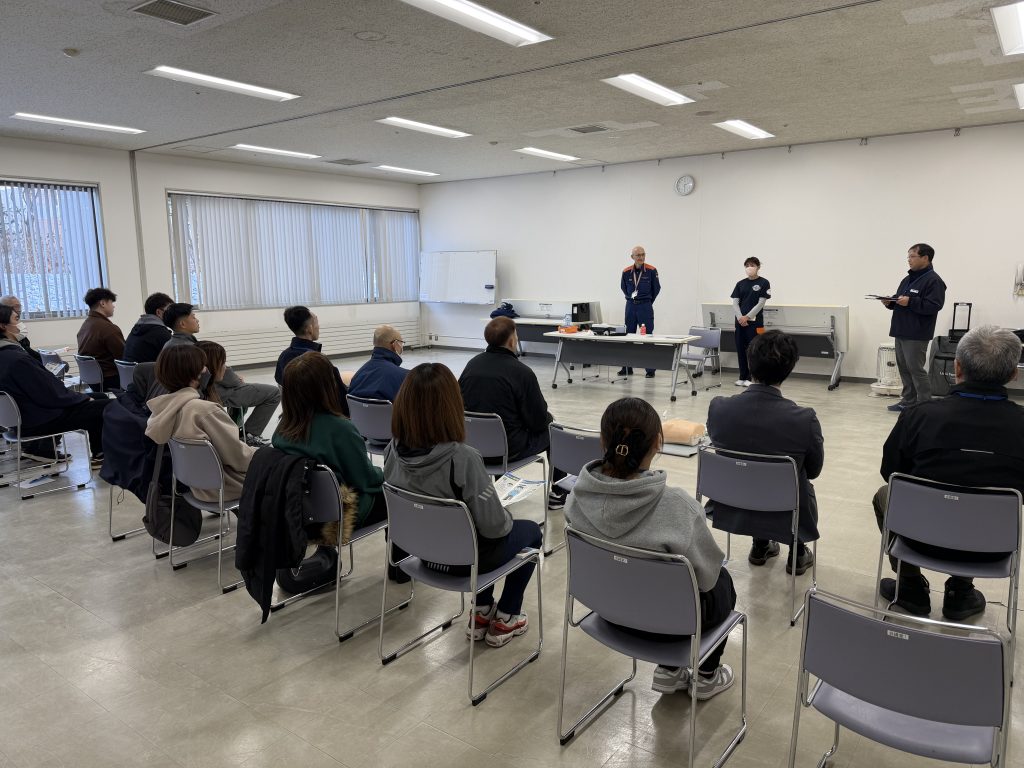 管理施設やスポーツイベントの現場において緊急時に迅速かつ適切に対応できるよう、心肺蘇生(CPR) の職員研修を行いました。苫小牧市消防本部から講師をお招きし、胸骨圧迫の正しい方法やAEDの使用手順を学び、実技を通して実際の場面を想定したトレーニングを行いました。スタッフ全員が真剣に取り組み、いざという時に命を守るための大切な知識と技術をしっかりと身につけることができました。今後も、安心・安全なサービス提供のために、定期的な研修を継続してまいります。引き続き、どうぞよろしくお願いいたします。